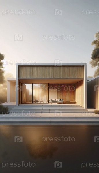 Нейтральный фотоотпечаток современного дома середины века, Ai generated image