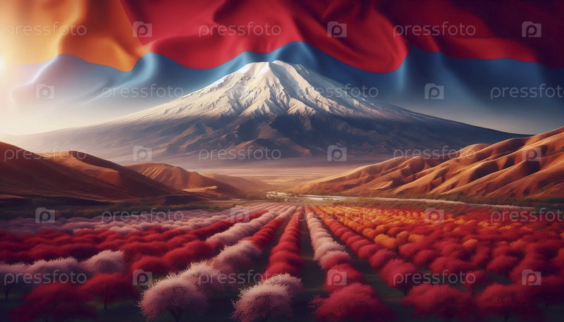 Армянский флаг на древней горе Арарат ландшафт, Ai generated image