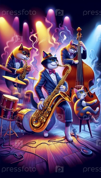 Группа кошачьих музыкантов Джаз-постер, Ai generated image