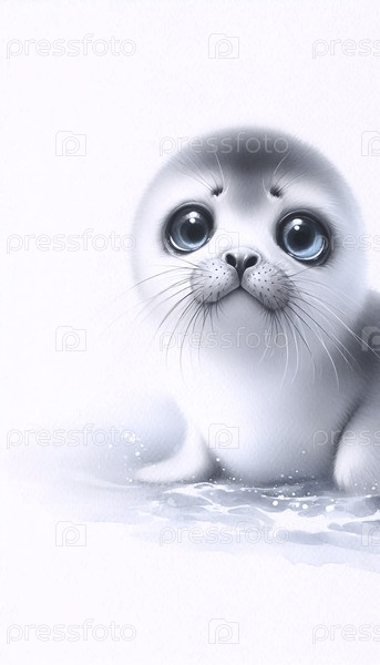 Cute Seal Pup акварельный арт-принт, Ai A generated image