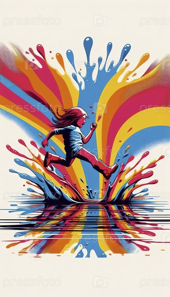 Радостный брызг в гигантском радужном луже, Ai generated image