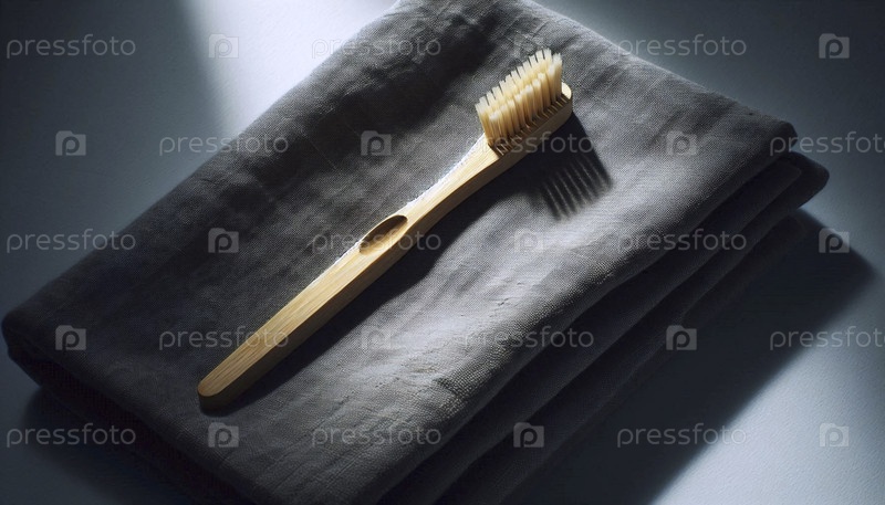 Мокет натуральной бамбуковой зубной щетки на сером текстиле, Ai generated image