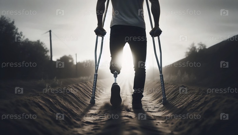 Человек, использующий костыли с заднего нижнего угла, Ai generated image