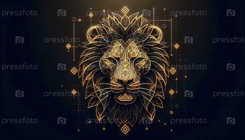 Цифровой неоновый геометрический плакат с портретом животного, Ai generated image