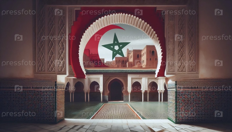 Марокканский флаг в сложной плоскости и архитектуре, Ai generated image