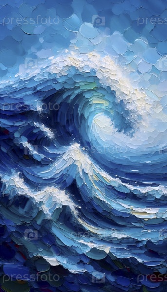 Абстрактная картина береговой волны на холсте, Ai generated image