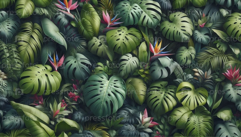 Тропический джунгли бесшовный шаблон, Ai generated image A