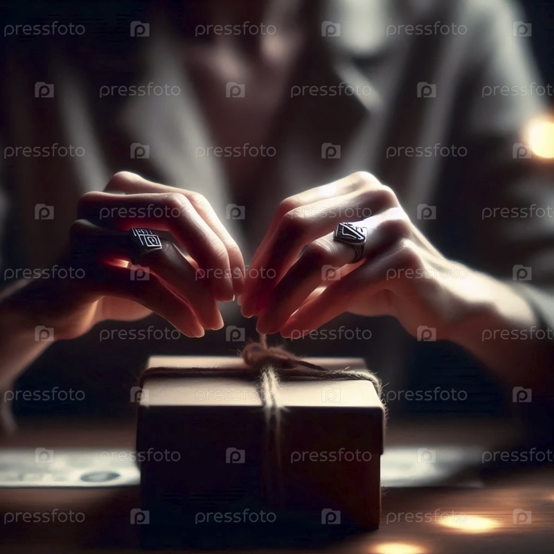 Напряженные руки и сцена с коробкой денег, Ай создал изображение