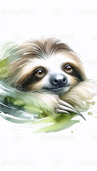 Cute Sloth акварельный художественный печат, Ai generated A image