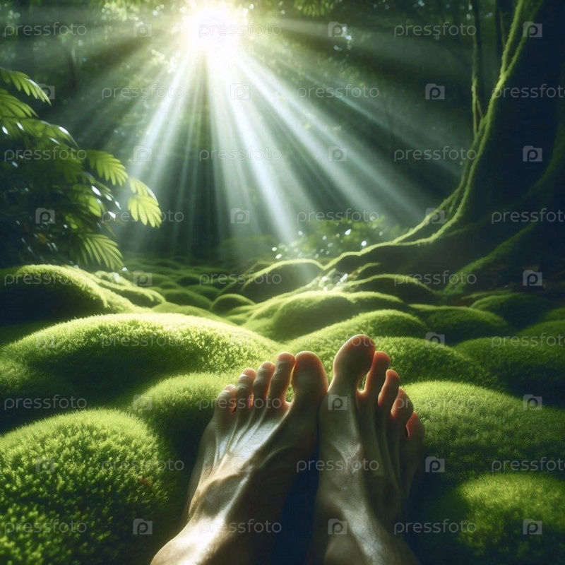 Спокойный момент купания в лесу и заземления, с голыми ногами на шее и пятничным светом Ай создал изображение