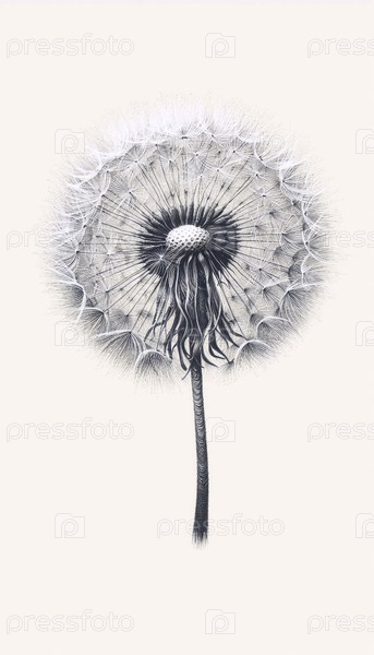 Single Dandelion Seed Head A ink drawing art print, Ai generated image Аи создал изображение