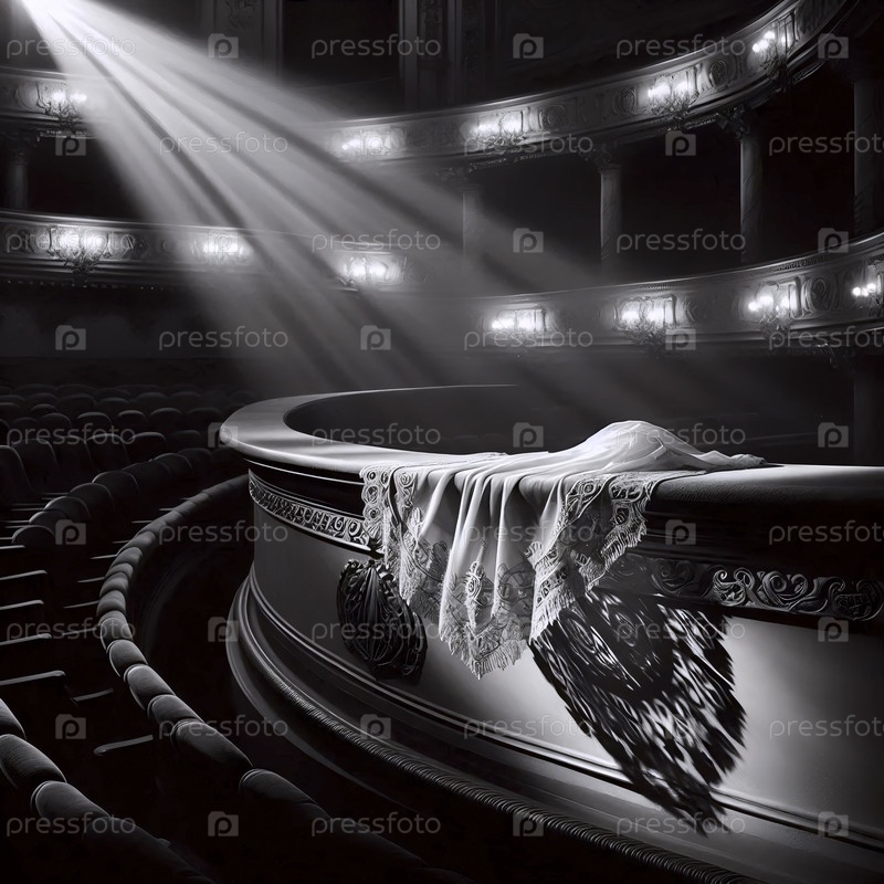 Забытый шелковый шарф на позолоченном периле оперного театра, Ai generated image