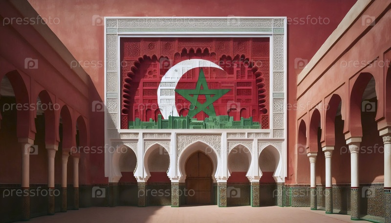 Марокканский флаг в сложной плоскости и архитектуре, Ai generated image