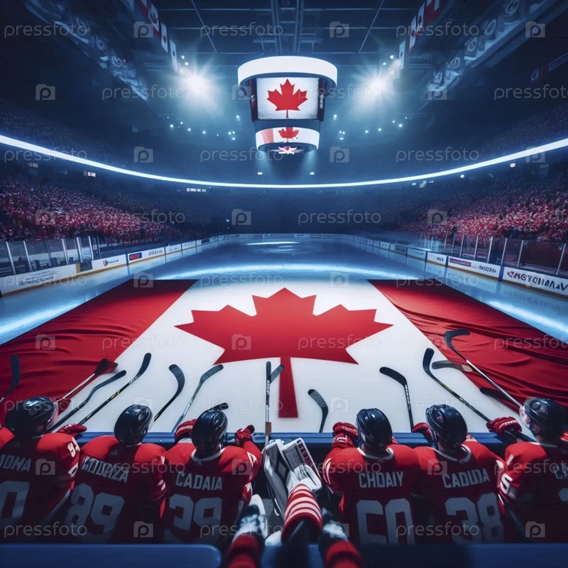 Канадский флаг в культуре хоккея на льду, Ai generated image