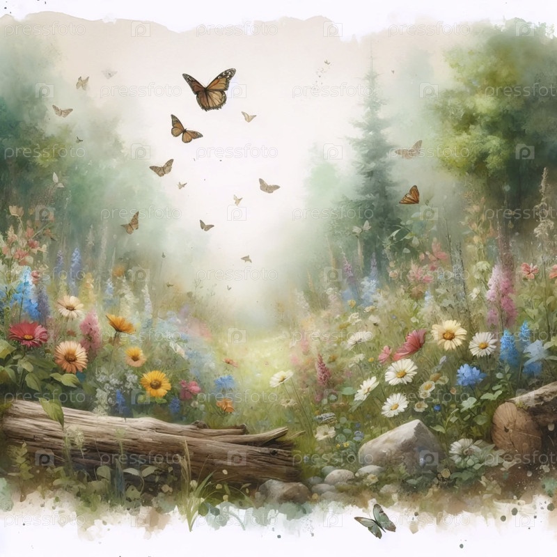 Ботаническое произведение искусства с вязанным узором, Ai generated image