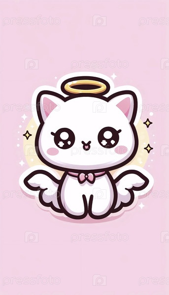 Милая kawaii angel cat наклейка с головой, Ai generated image