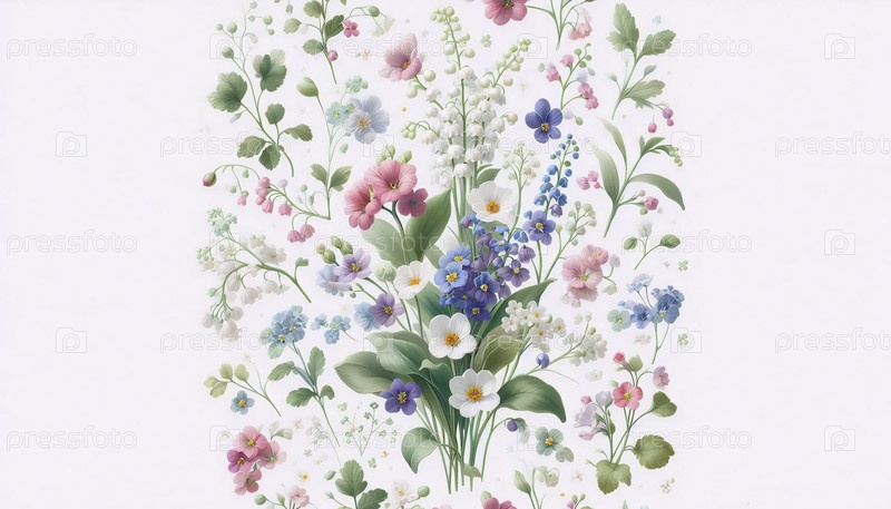 Небольшой цветочный рисунок Весенний цветный дизайн, Ai generated image