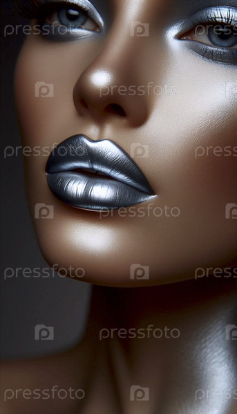 Портрет с металлическими серебряными губами, Ai generated image