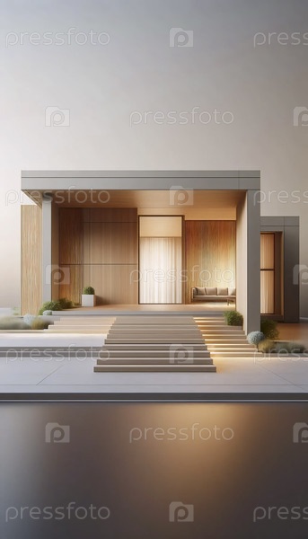 Нейтральный фотоотпечаток современного дома середины века, Ai generated image