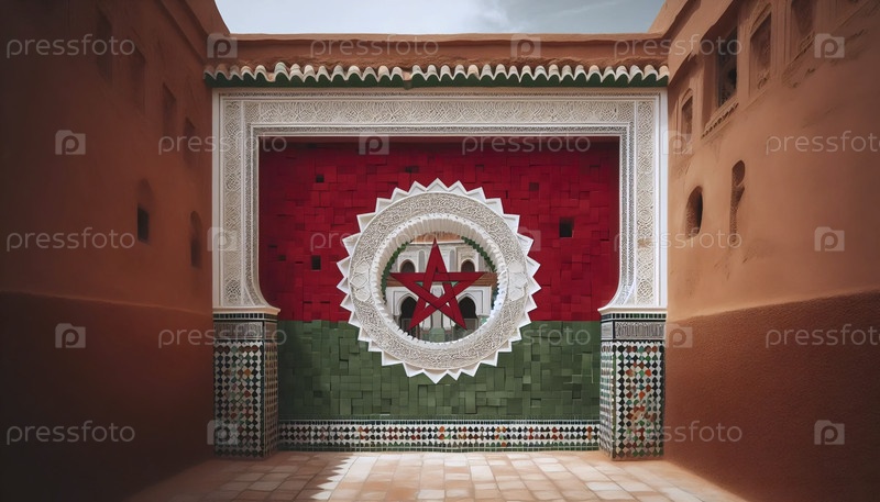 Марокканский флаг в сложной плоскости и архитектуре, Ai generated image
