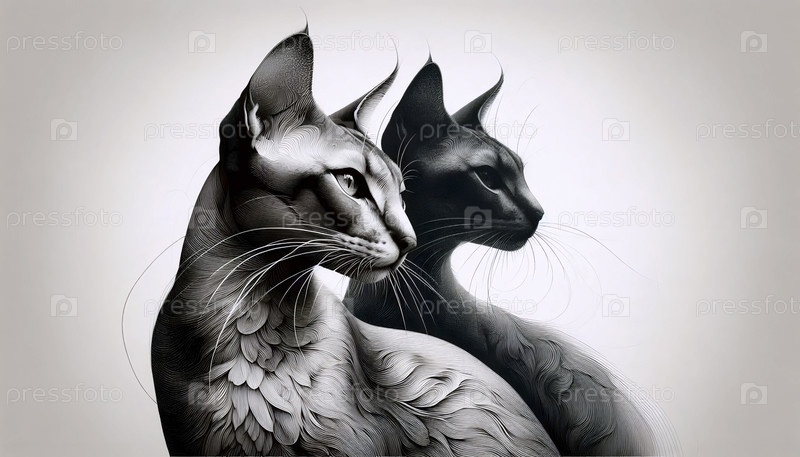 Минималистский арт-принт с чернилами кошек, Ai generated image