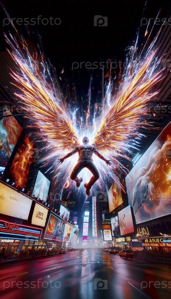 Ангел падает через Таймс-сквер Биллборд, Ai generated image
