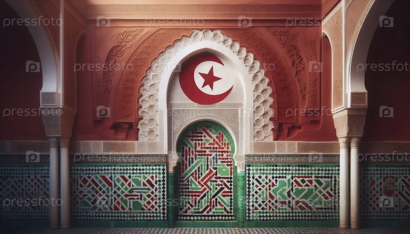 Марокканский флаг в сложной плоскости и архитектуре, Ai generated image