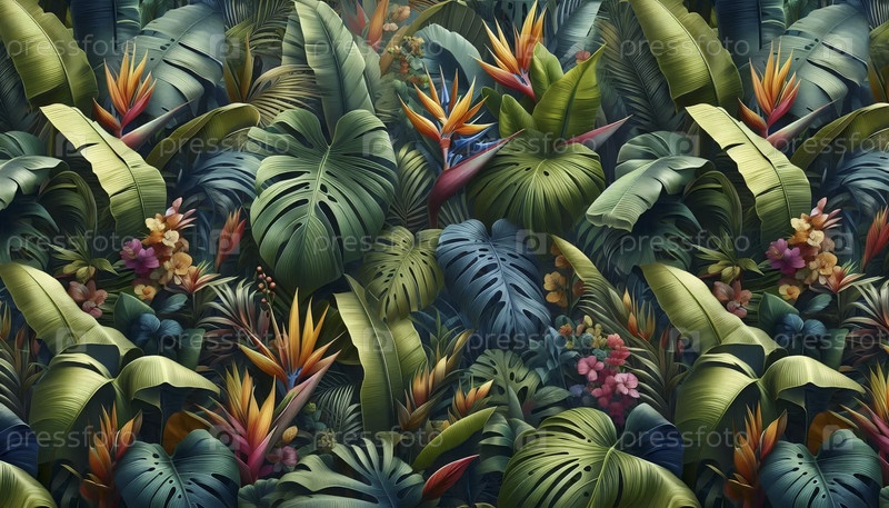Тропический джунгли бесшовный шаблон, Ai generated image A