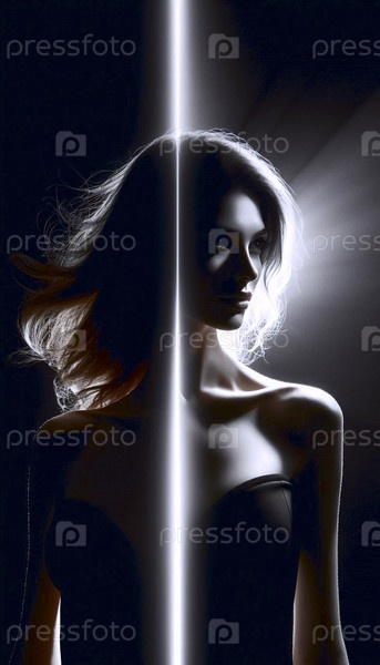 Женщина, пересекающая линию между светом и тенью, Ай создала изображение