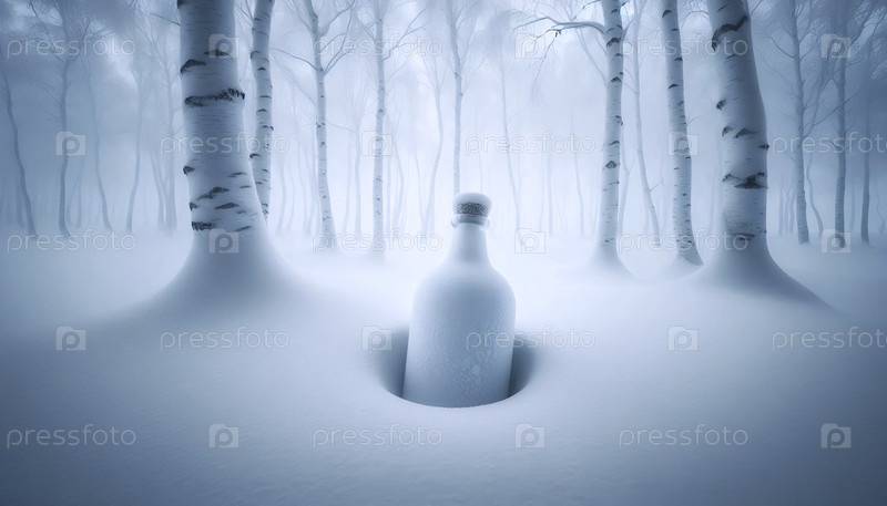 Мокет стеклянной бутылки мороженого, частично похороненный в свежем изображении, созданном AI