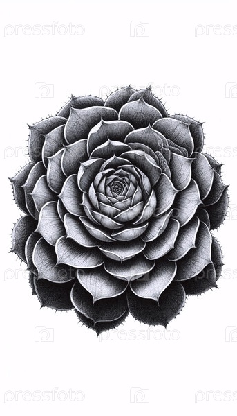 Succulent Rosette A ink drawing art print, Ai generated image Аи создал изображение с помощью чернил