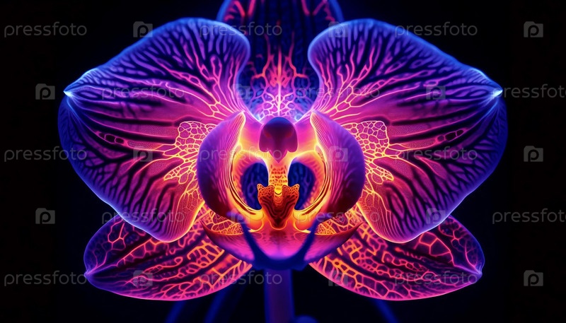 Орхидея в ультрафиолетовом свете, Ai generated image