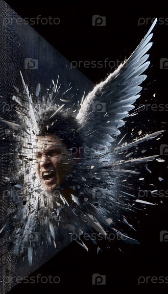 Ближайший план, когда крыло ангелов разрывается через пиксельный экран, Ай создал изображение