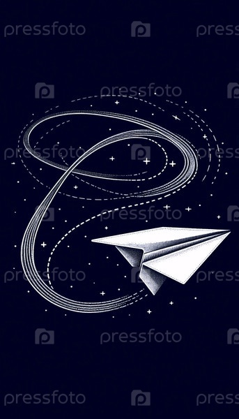 Бумажный самолет в полете чернила рисование художественного рисунка печать на черном, Ai generated image