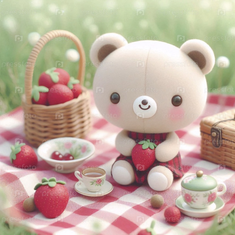 Кавайская сцена медведя на пикнике, Ai generated image