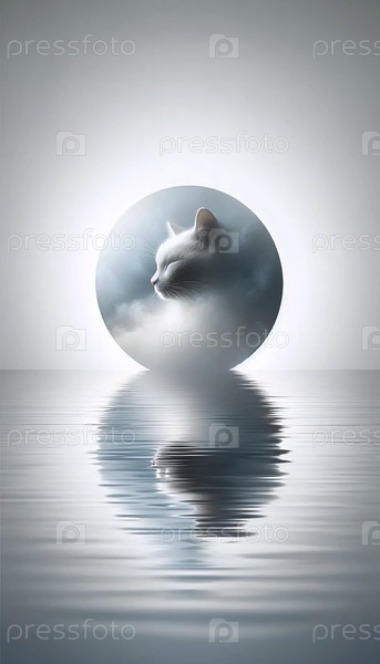 Мечтательный плакат с отражением кошки, Ai generated image