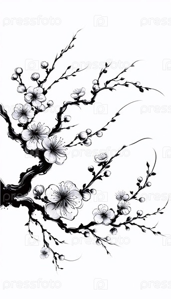 Вишневый цветок ветви линейного искусства, Ai generated image