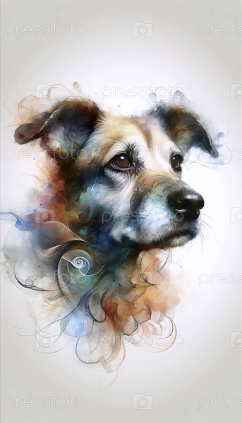Цифровой акварельный портрет собаки из фото, Ai generated image