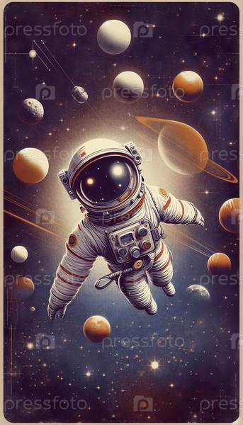 Винтажный стиль Лайки в космическом полотном принте, Ai generated image
