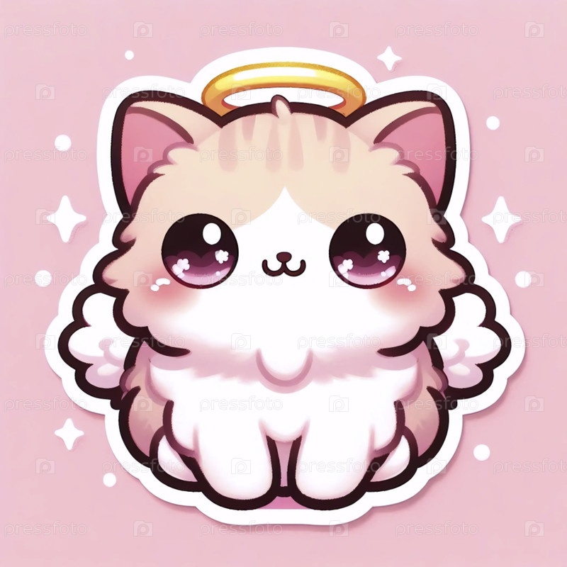 Милая kawaii angel cat наклейка с головой, Ai generated image