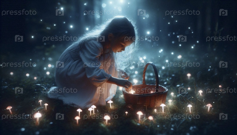 Девочка собирает звезды в корзине, Ai generated image