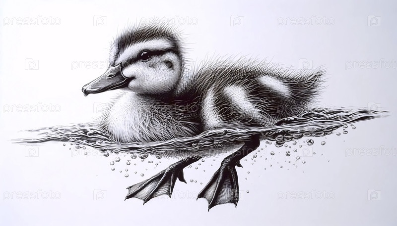рисунок с чернилами уток-плаватель