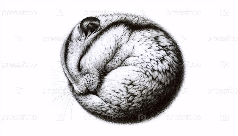 Спящий хомяк чернила рисунок A sleeping hamster ink drawing art print, Ai generated image