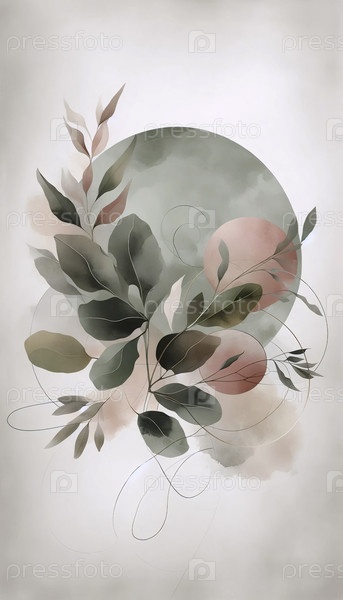 Бохо ботанический настенный принт с абстрактным акварелем, Ai generated image