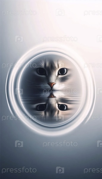 Мечтательный плакат с отражением кошки, Ai generated image