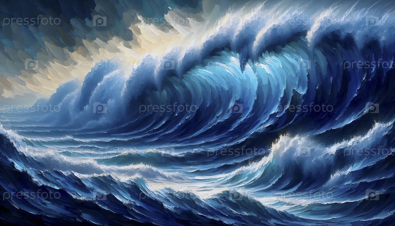 Абстрактная картина береговой волны на холсте, Ai generated image