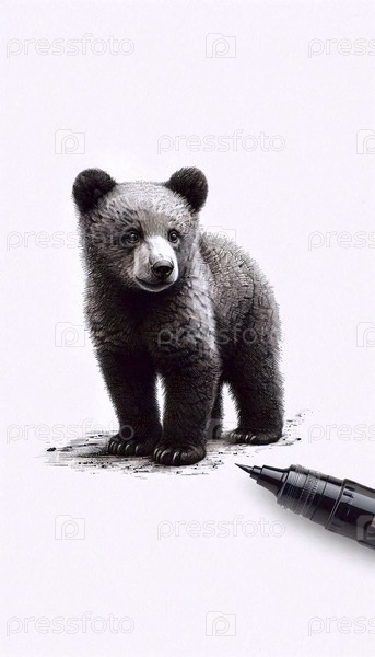 чернильный рисунок медвежьего детеныша
