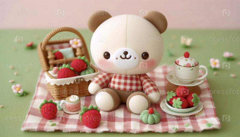 Кавайская сцена медведя на пикнике, Ai generated image