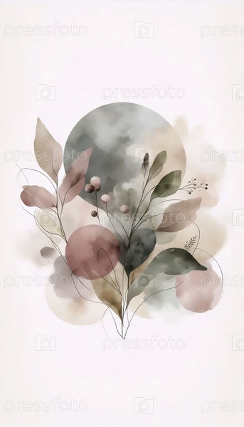 Бохо ботанический настенный принт с абстрактным акварелем, Ai generated image