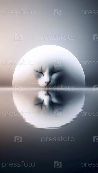 Мечтательный плакат с отражением кошки, Ai generated image